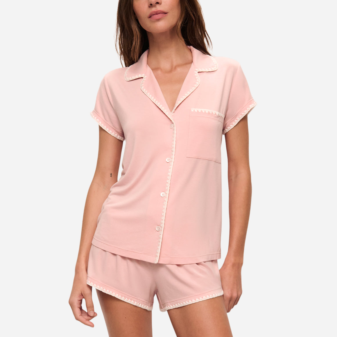 Petite Plume took all the best features of their best-selling Gisele collection—the softness, the comfort, the temperature-regulating fabric—and added eye-catching artisanal whipstitch piping to both the top and bottom for a playful, Bohemian vibe. Made from TENCEL™ Modal fibers and a touch of spandex, this super soft fabric is verified by OEKO-TEX® Standard 100, meaning it’s dyed with safe and non-toxic dyes. This set has a classic slim fit short sleeve top and a low-rise cheeky short with an elastic waistband, so you can feel comfortable and stylish all at the same time.