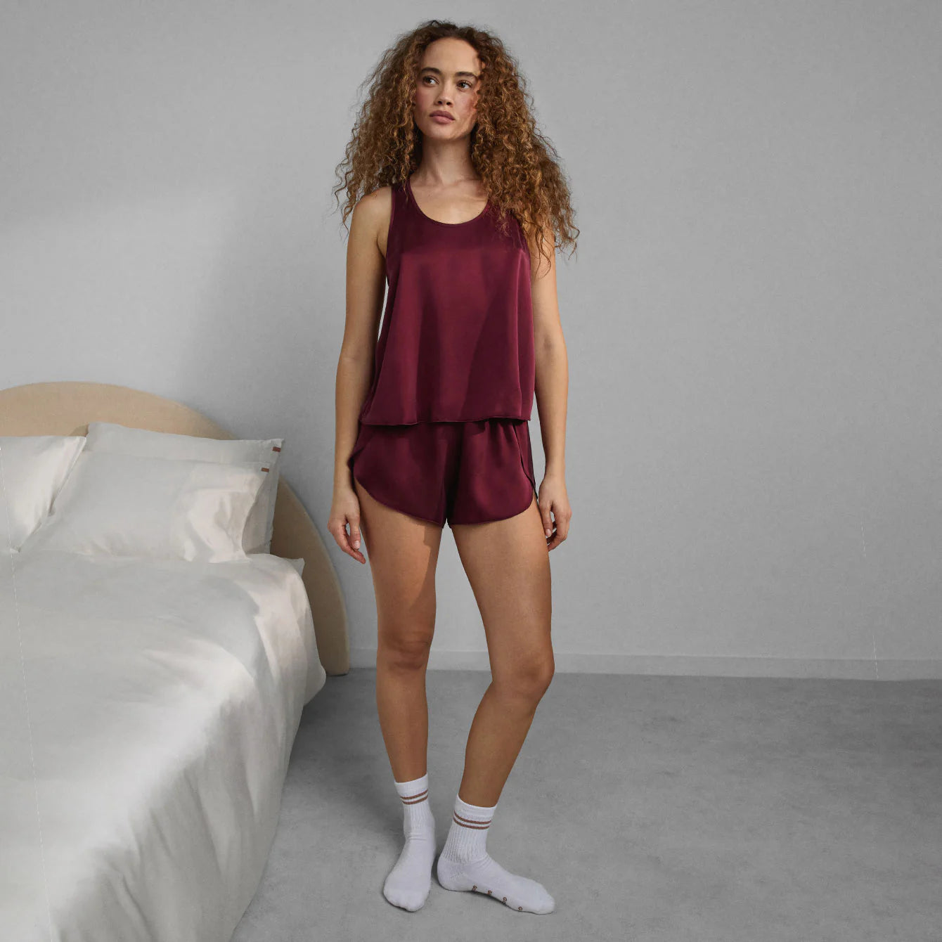 The set they're talking about when they say, "get your beauty sleep." Made with a flattering tulip racer back design and matching mid-rise bottoms with tulip hemming, you’ll feel extra flowy and breezy (aka, it’s made to move with every sleep position). Constructed of 100% Mulberry Washable Silk with naturally thermoregulating properties, you’re channeling that “not too hot, not to cold” kinda perfection.