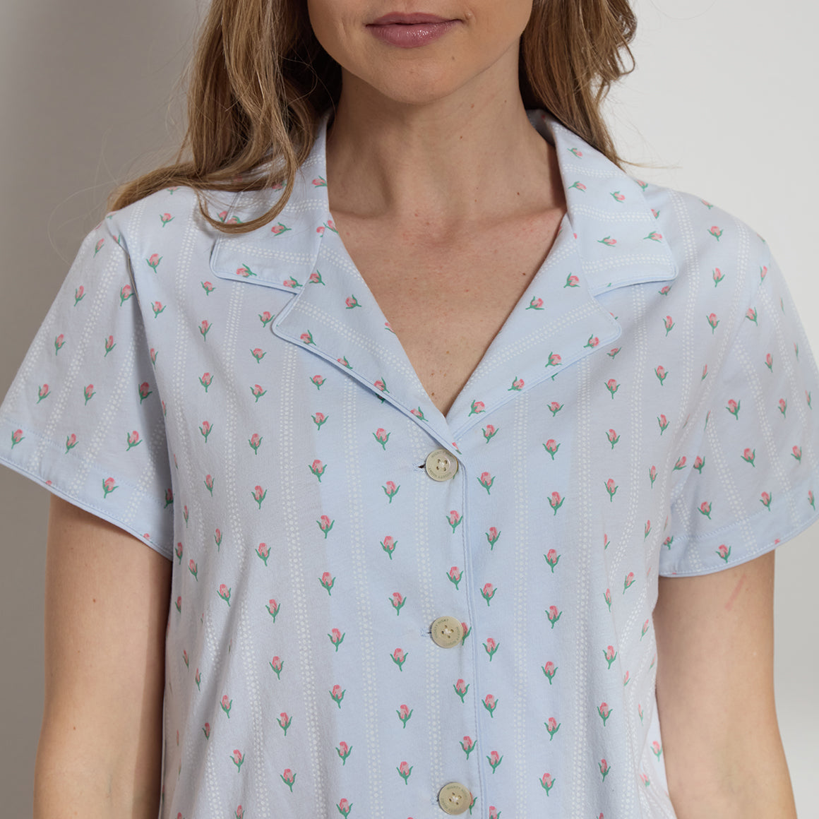 Our short sleeve pajama set features a relaxed fit, providing you with a comfortable and stylish option for warmer nights. The pajama set includes a classic button-up top with a collar, while the matching shorts feature a comfortable elasticated drawstring waist.