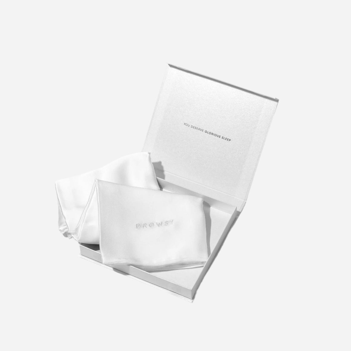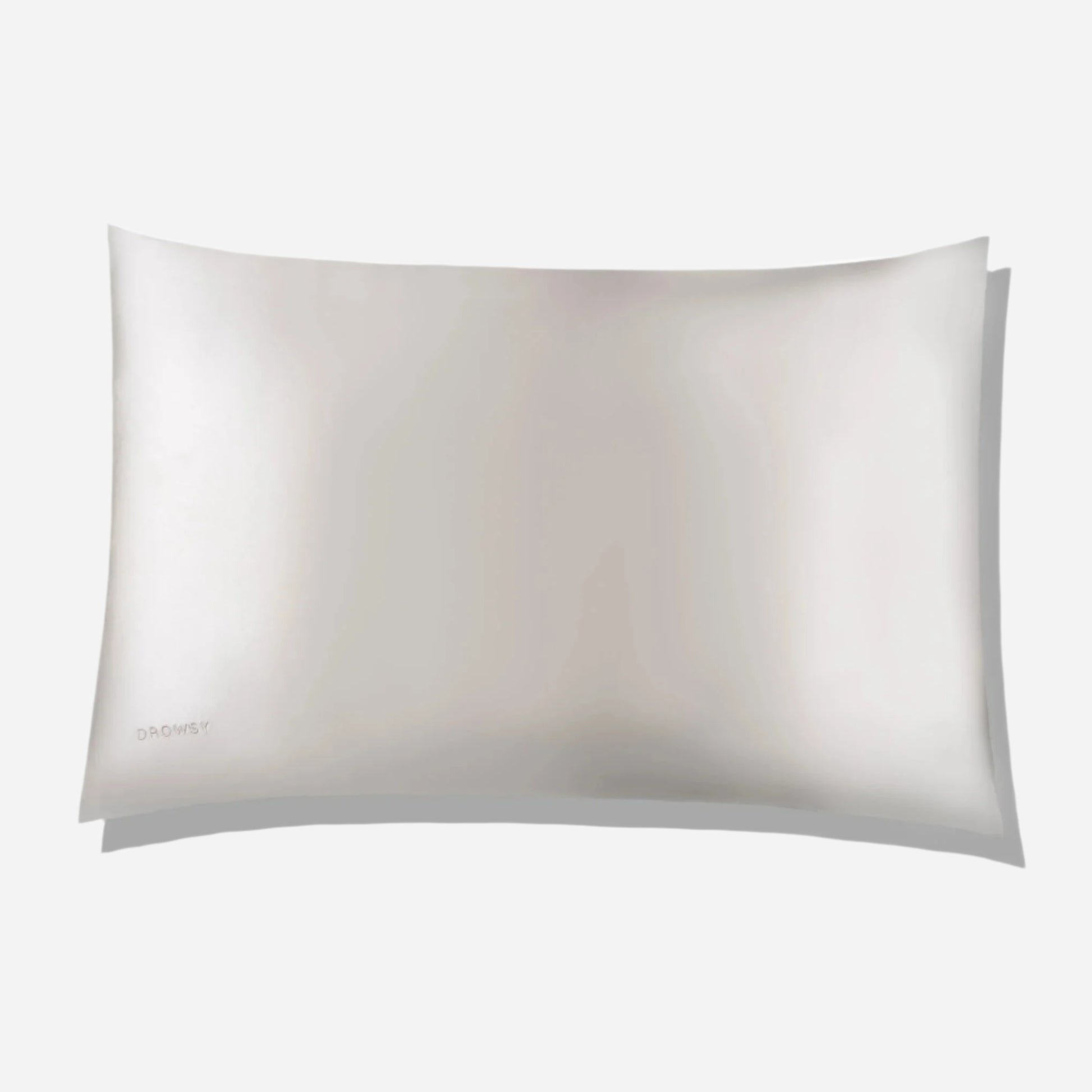 Indulge in this luxurious silk pillowcase from Drowsy—crafted with a sleek envelope closure, hair-protecting, anti-sleep crease benefits, and fully washable to elevate your nightly beauty sleep.