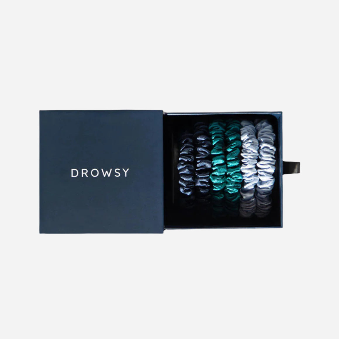 Protect and pamper your hair with Drowsy's luxe set of 100% mulberry silk scrunchies—lightweight, padded, and gentle on strands to reduce friction, breakage, and creases. Crafted from 22-momme silk, they maintain hair thickness and volume while looking effortlessly chic, whether you’re styling, sleeping, or lounging.