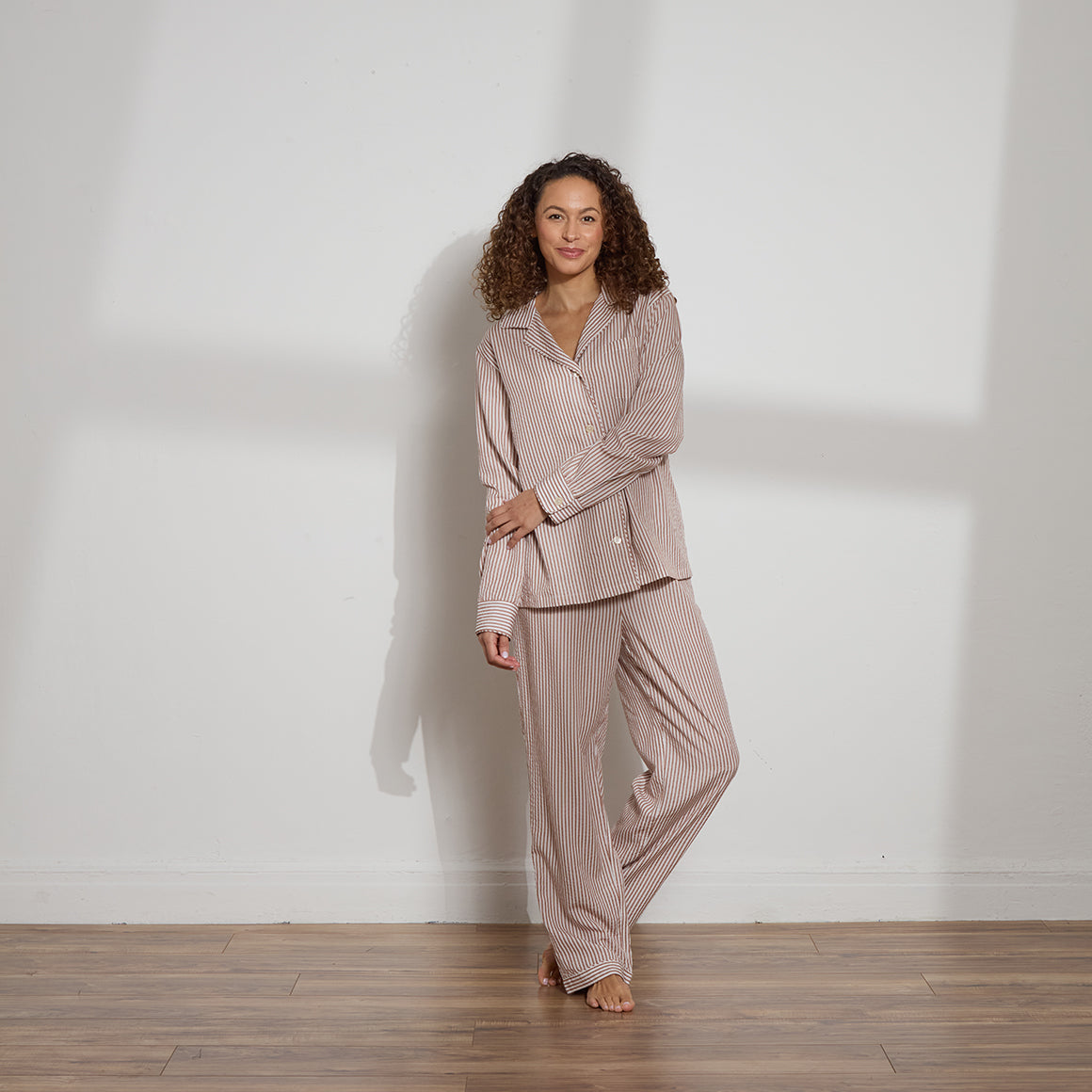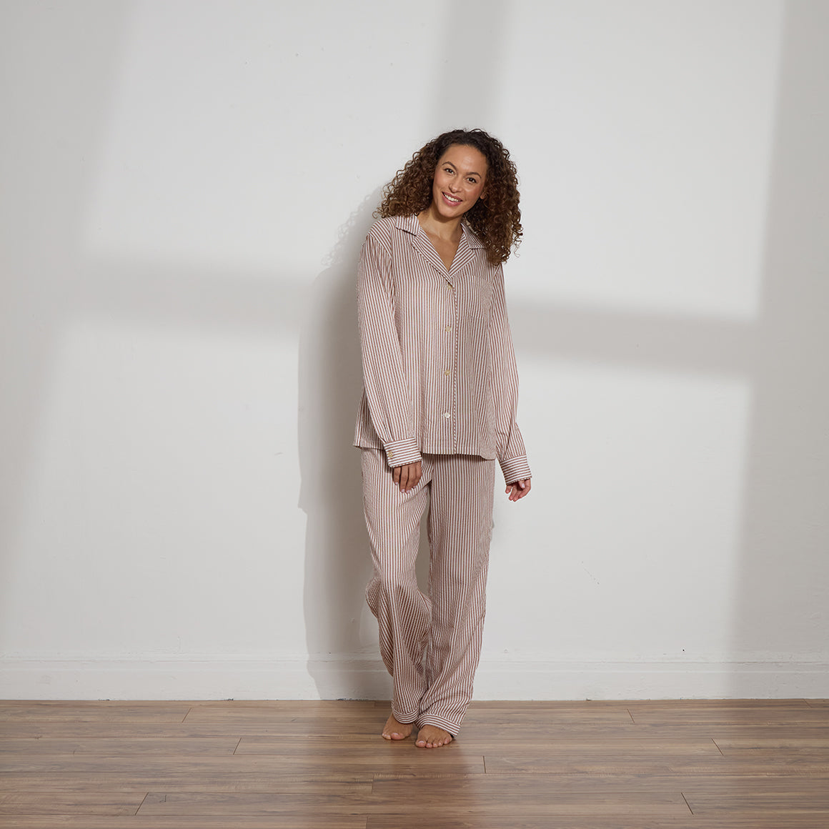 Perfectly lightweight and breathable, our TENCEL™ Ticking Stripe Pajamas are a stand out in our sleep wardrobe all year round, but especially during the warmer months. With a classic ticking stripe, these add a touch of femininity to a classic pajama silhouette.