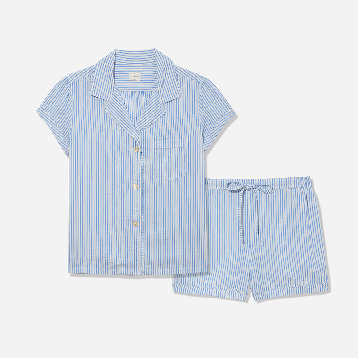 Perfectly lightweight and breathable, our TENCEL™ Ticking Stripe Pajamas are a stand out in our sleep wardrobe all year round, but especially during the warmer months. With a classic ticking stripe in a blue hue, these add a touch of femininity to a classic pajama silhouette.