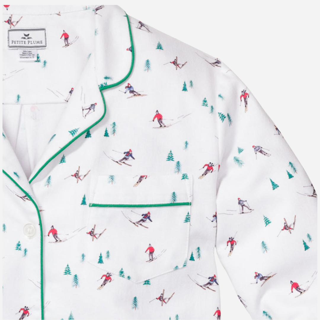 End every ski day—or any day—in total comfort with Petite Plume's charming flannel pajamas. Made from lightweight, brushed 100% cotton flannel, they’re incredibly soft, breathable, and cozy without overheating. The fabric is yarn-dyed to prevent fading and becomes even softer after each wash, making bedtime feel luxurious and restful.