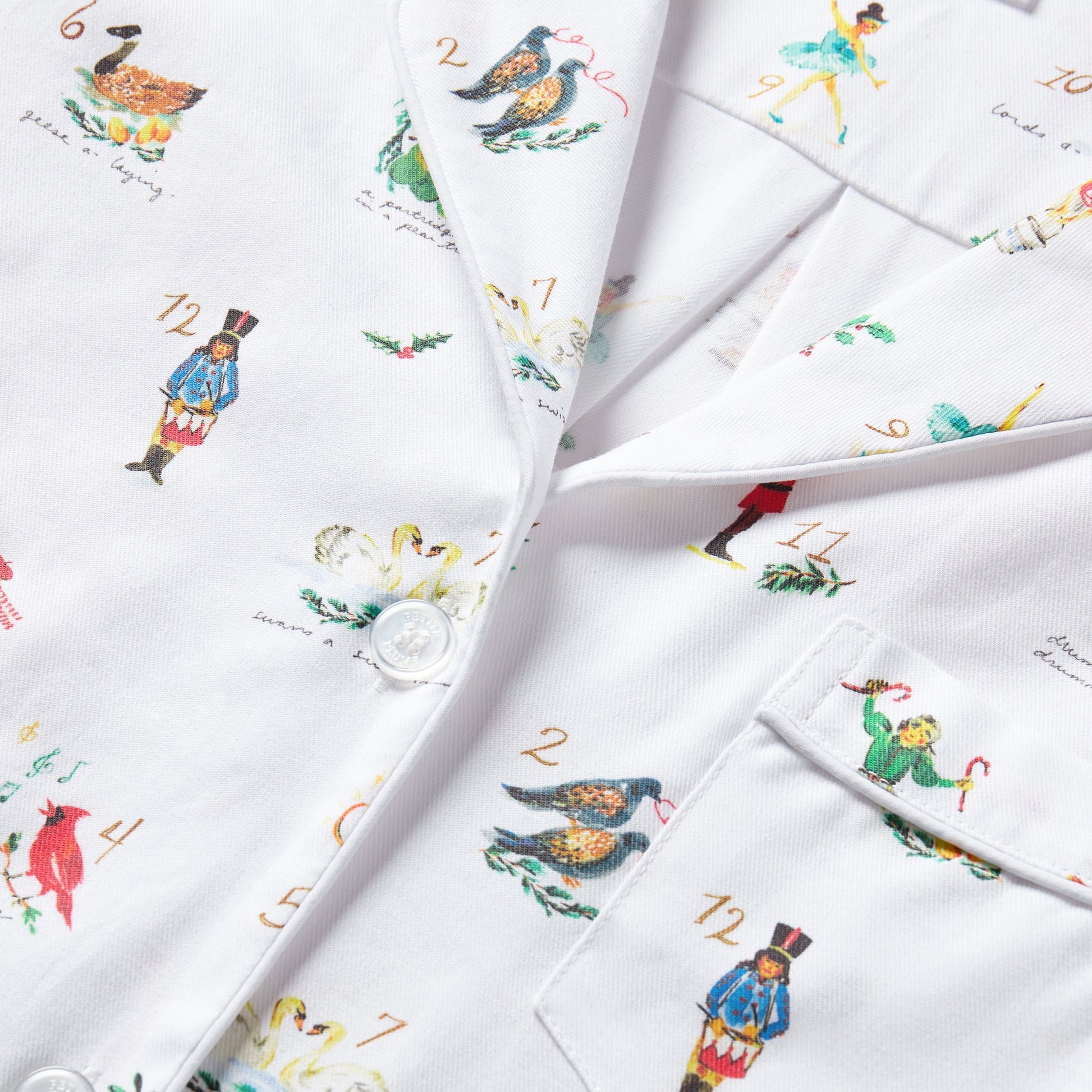 Bring festive cheer to bedtime with the 12 Days of Christmas Pajama Set. Made from premium 100% cotton twill, these soft, breathable, and moisture-wicking pajamas become more buttery with every wash, keeping you cozy and comfortable all night long. Perfect for restful, luxurious sleep.